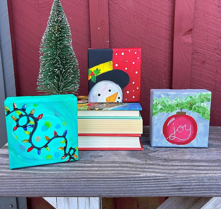 Each painter receives THREE canvases and then YOU choose which three designs you'd like to paint. A tracer & printed steps are provided for your chosen designs and Megan is available all evening to help you bring your vison to life!