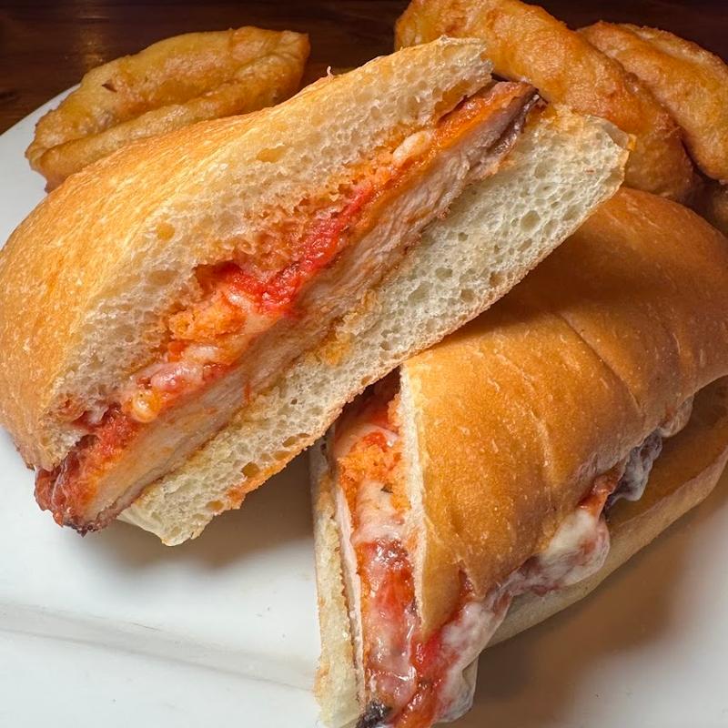 Chicken cutlet with mozzarella topped with Fornarellis famous marinara sauce.