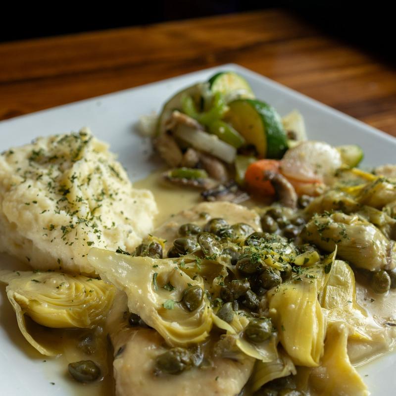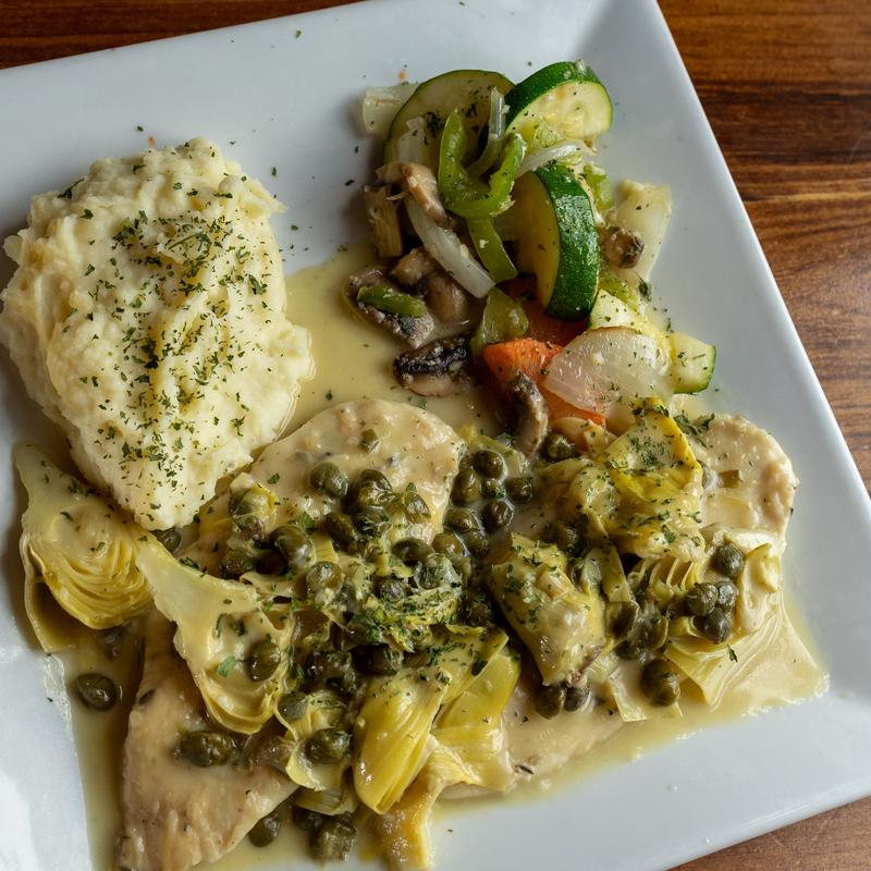 Chicken breast sauteed with artichokes and capers in a lemon white wine sauce.